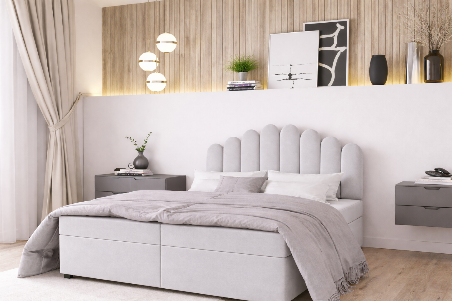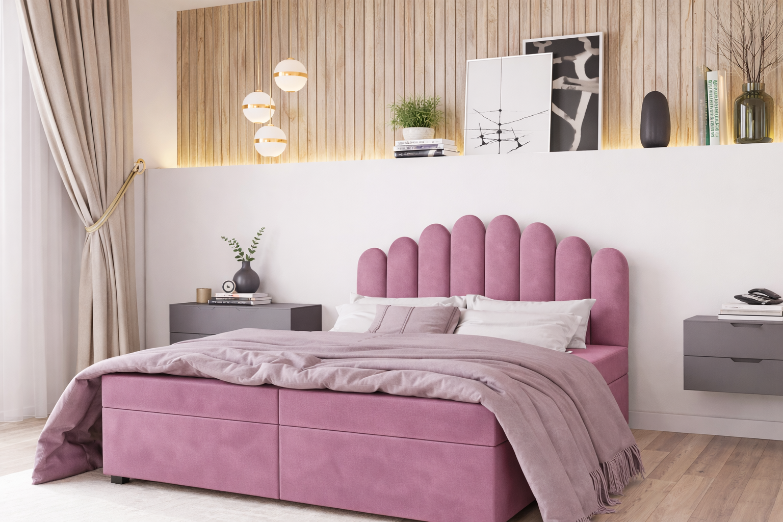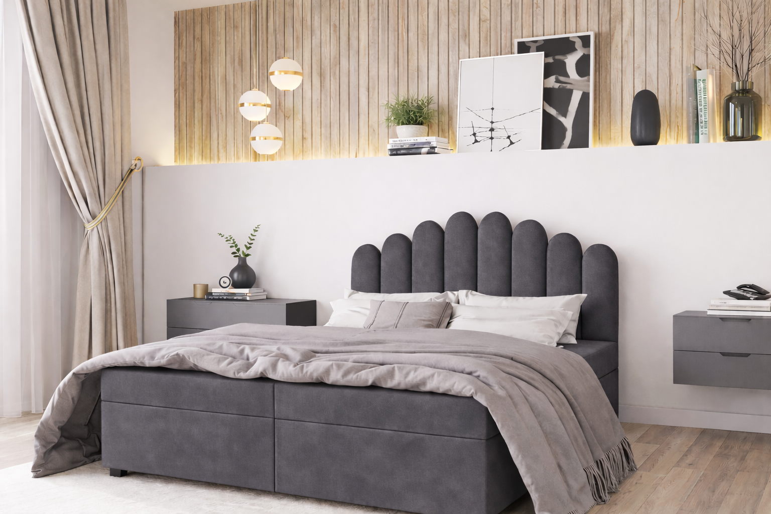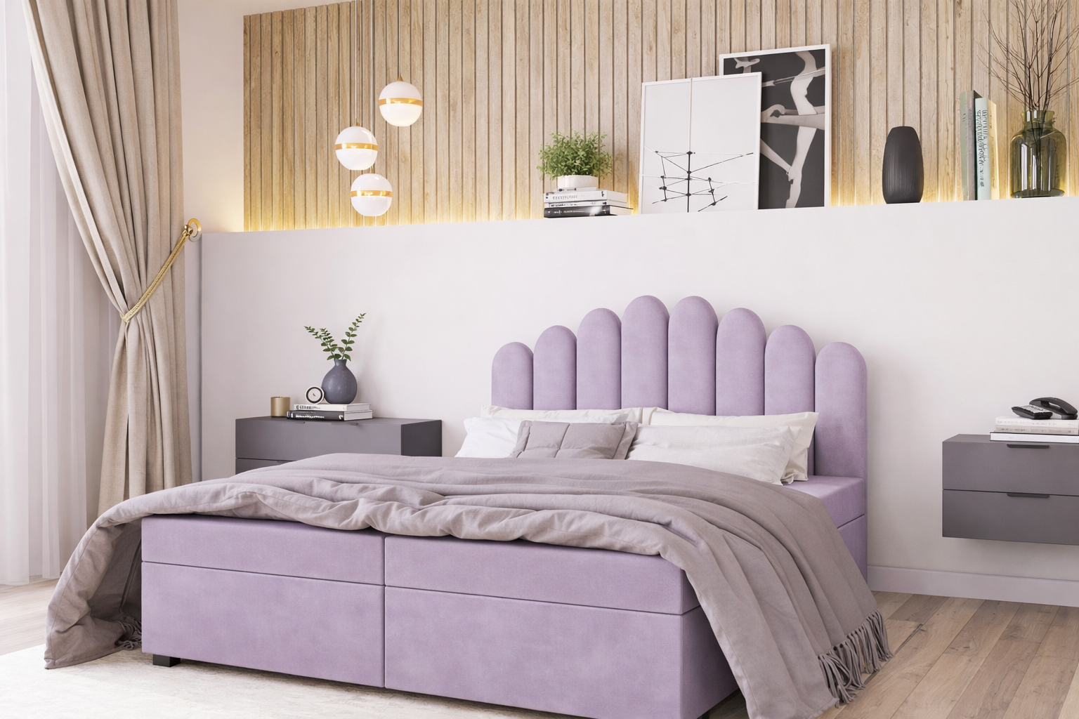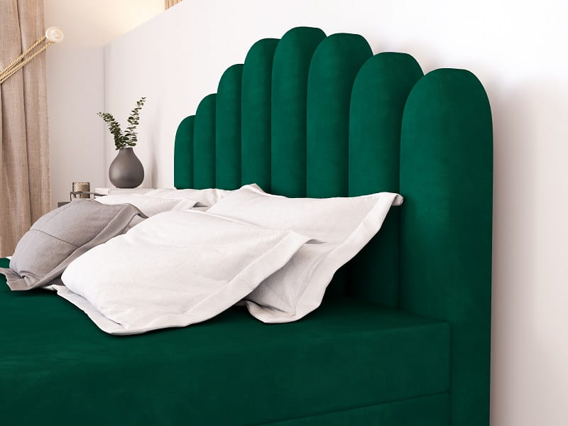 Jako funkcjonalne łóżko kontynentalne z pojemnikiem, posiada ono pod drewnianym stelażem praktyczny schowek na pościel. Całość obito hydrofobową tkaniną Monolith, dostępną w kolorach: